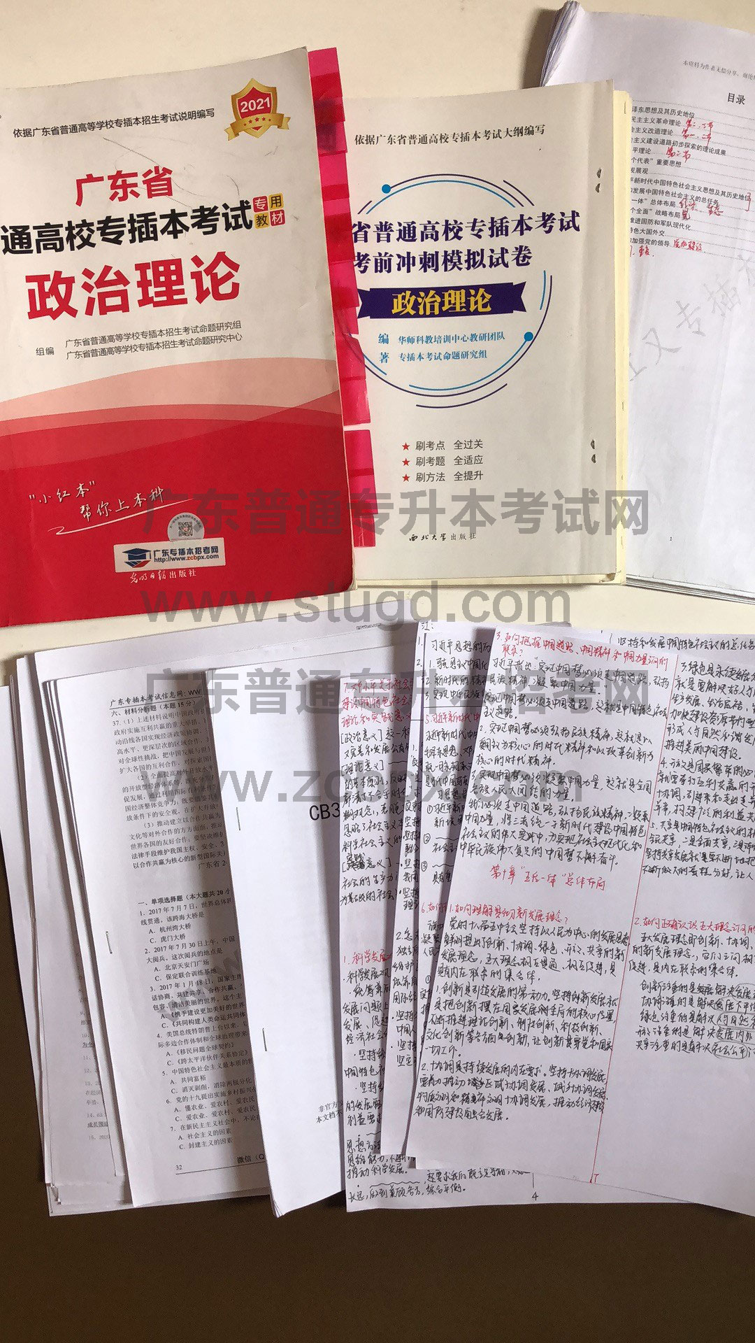 辅导教材小红书上面的政治教学视频,建议大家都别去看了,照着书去讲,完全没意义。有人看B站某考研老师讲的毛中特,但是我不太建议去看这种,我是专插本,不是考研,老师讲的侧重点不在插本,所以不要浪费时间在这里。历年真题要全部刷一遍,加上小红本上的练习和华师的练习卷子,基本能掌握所有客观题的知识。后来我是通过一个学习群,在里面有人分享了一个免费的文档的精华笔记,是一位曾经插过本的师兄分享出来的。我背大题全用它,基本上都押对了题目。我相信一定有同学做练习的时候不做大题,其实大题更加要去做,做过了有印象,到了考场也能凭借记忆背出来。我是到了3月开始专门做大题,每天早上7点半开始读加背诵大题,默写大题到空白A4纸上。每天设置不同的任务量,一早上一章节这样会更好。早上起床大声读书背书确实可以提神,而且记忆更好,别觉得放声读丢脸,吃亏的是自己。