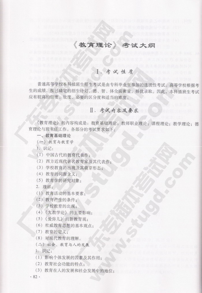 2010年广东专插本公共课教育理论考试大纲