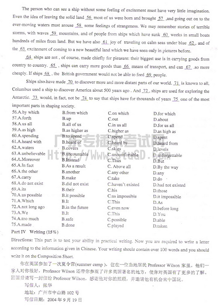 时间: 2005年12月20日 来源:广东专插本考试网 作者: zcbpx 浏览: 次
