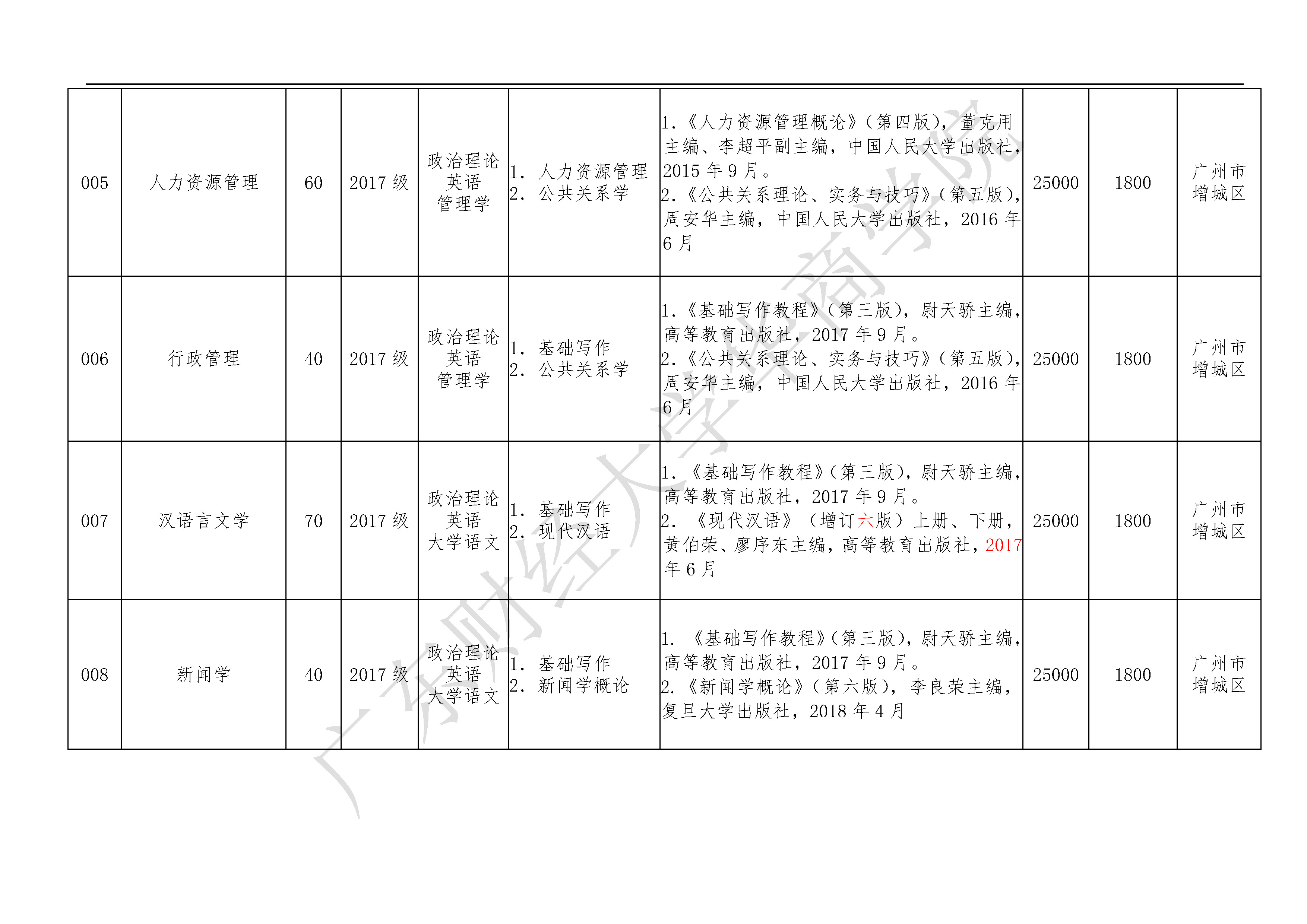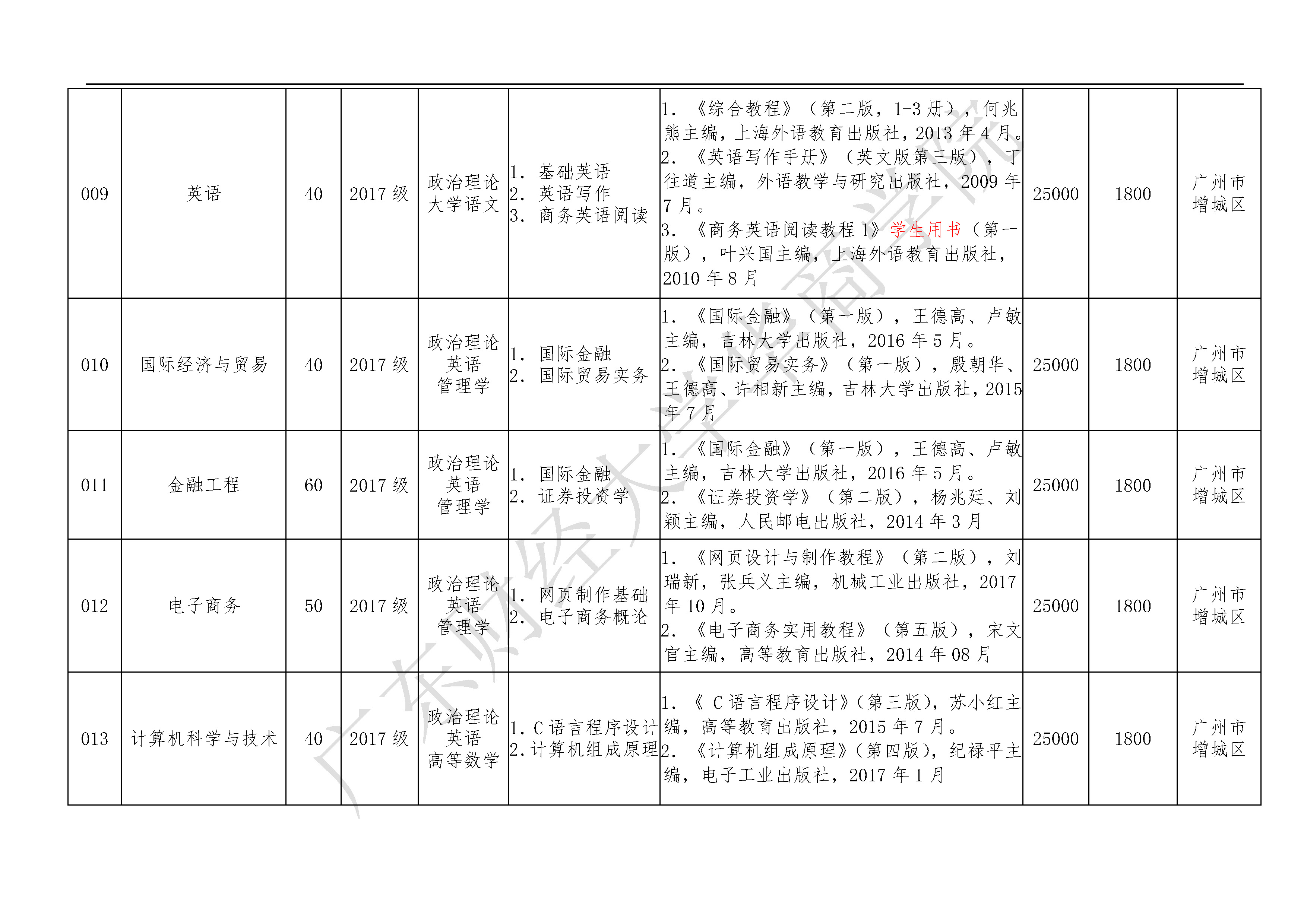 2019年广东财经大学华商学院本科插班生招生专业目录